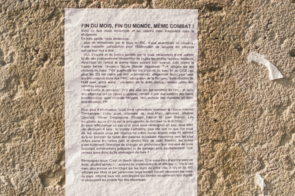 Fin 2018, le mouvement des Gilets jaunes prend forme, d’abord contre une taxe sur l’essence, puis pour faire entendre un faisceau large de revendications centrées autour d’une amélioration du pouvoir de vivre et d’une quête de plus de démocratie. Ces demandes ont pu être consignées dans des cahiers de doléances ouverts sur les ronds-points, dans ce qui ressemble à une version contemporaine des cahiers de l’Ancien Régime dont les plus notoires sont ceux qui ont précédé la Révolution de 1789. L’idée est reprise par des associations d’élus (Maires d’Ile-de-France et Maires ruraux de France) qui ouvrent en décembre 2018 des cahiers dans leurs mairies. Parallèlement, le président de la République Emmanuel Macron annonce l’ouverture d’un « grand débat national », articulé autour de quatre grands thèmes : la transition écologique, la fiscalité et les dépenses publiques ; la démocratie et la citoyenneté ; l’organisation de l’État et des services publics. Des « cahiers citoyens et d’expression libre » y sont adjoints sur la recommandation de la Commission nationale du débat public et officiellement intégrés à partir du 15 janvier 2019, jusqu’à la clôture du dispositif le 22 février 2019. Au total, près de 20 000 cahiers citoyens ont été ouverts, et environ 225 000 contributions individuelles produites.